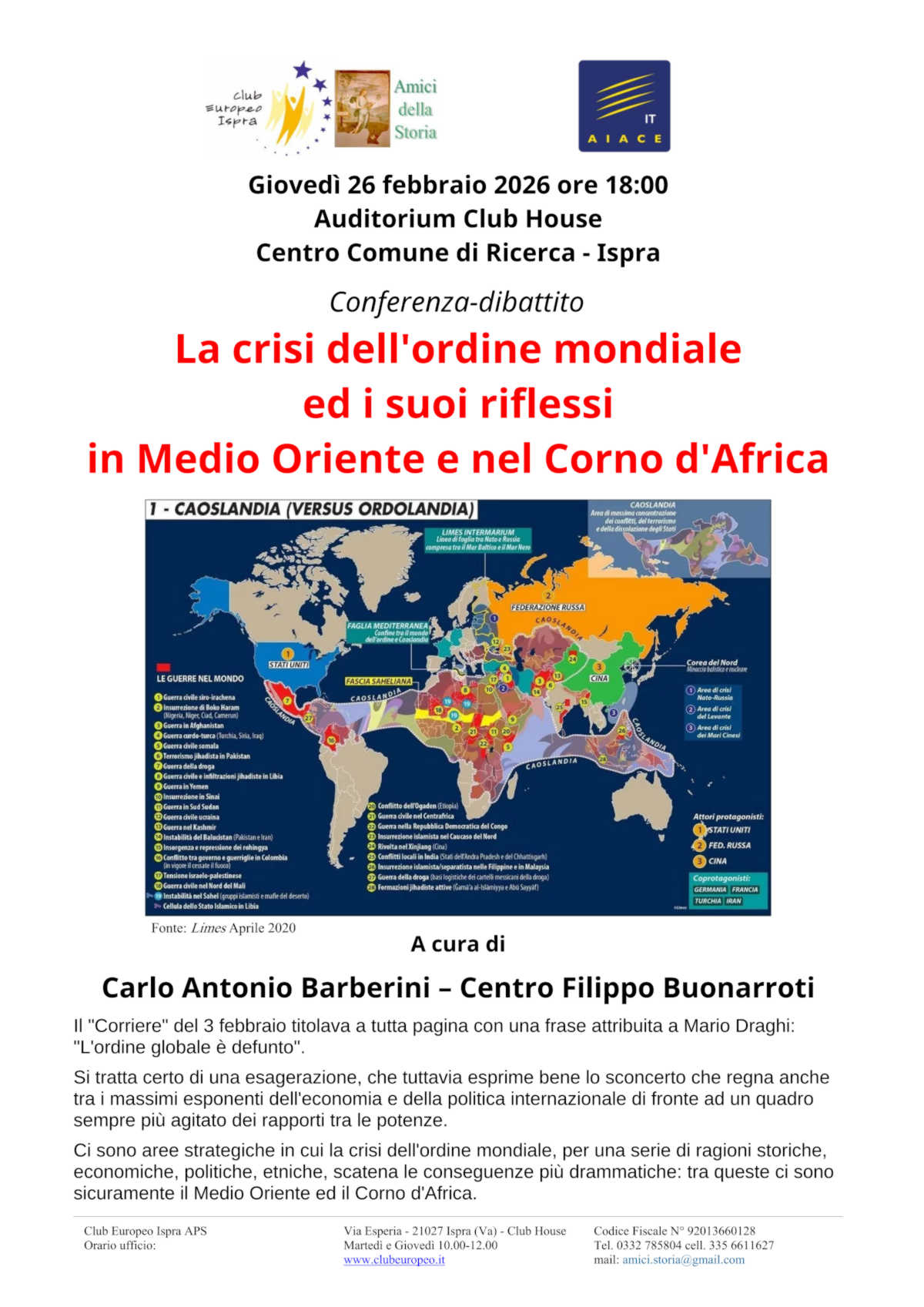 Gli Amici della Storia - Club Europeo organizzano la conferenza-dibattito: