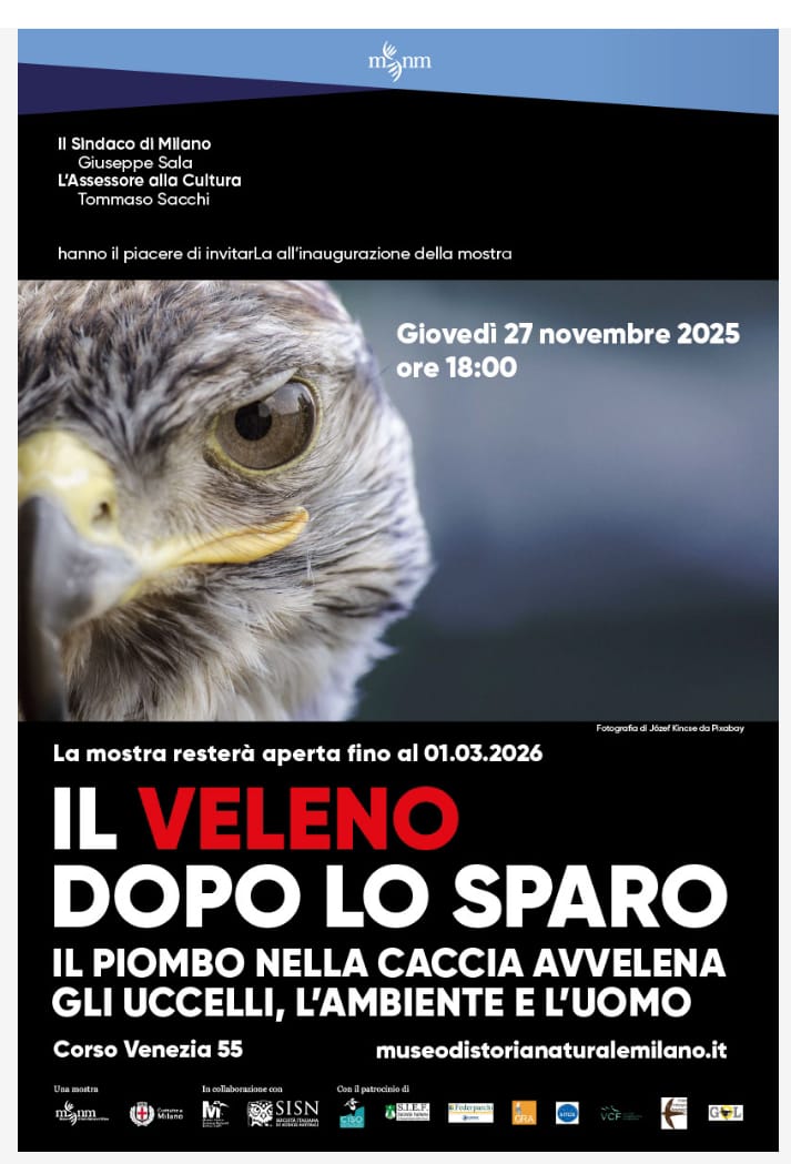 Venerdì 28 novembre, al Museo di Storia Naturale, apre la mostra Il veleno dopo lo sparo. Il piombo nella caccia avvelena gli uccelli, l'ambiente e l'uomo, un percorso dedicato ai rischi ambientali e sanitari legati all’uso del piombo nelle munizioni da caccia.