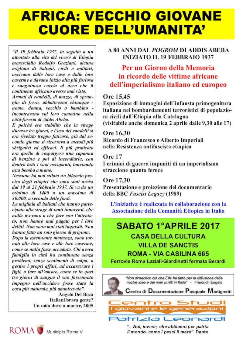 Giorno della Memoria in ricordo delle vittime africane dell’imperialismo italiano ed europeo
