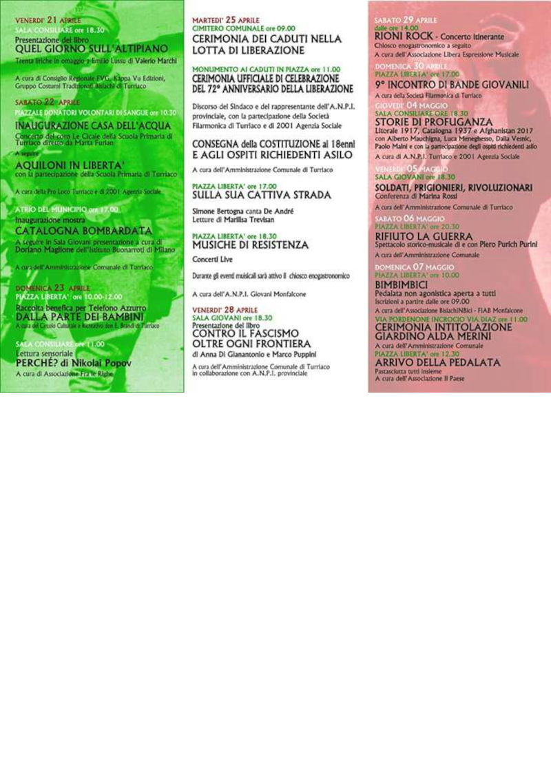 Da sabato 22 aprile a domenica 7 maggio 2017
